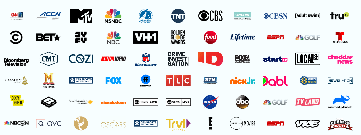 National and local sports programming from ABC, CBS, FOX, and NBC sports channels,